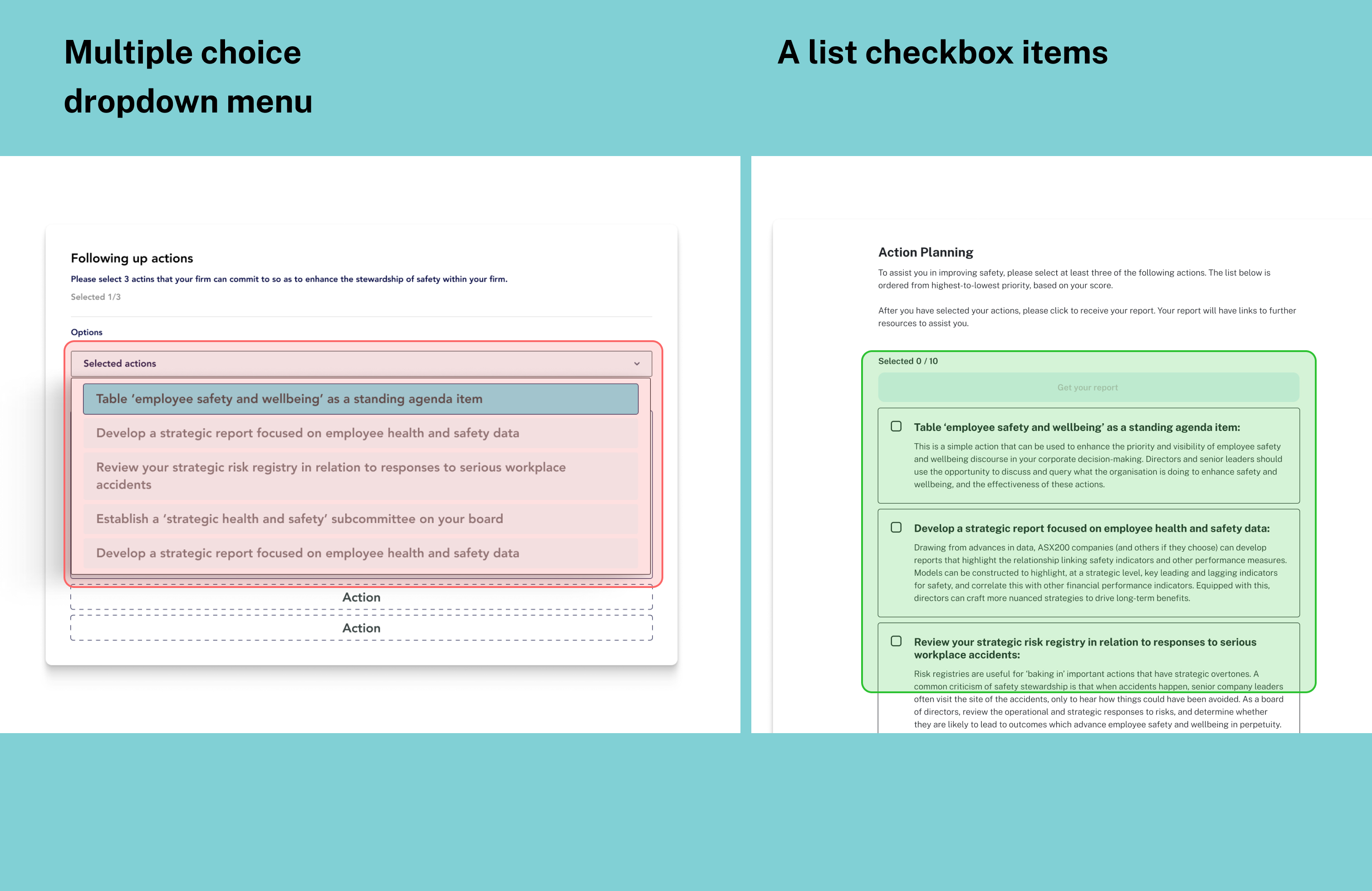 ‍Replaced dropdowns with visible option lists to improve scannability.